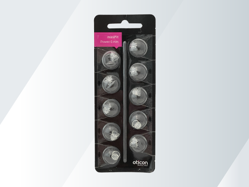 Oticon miniFit dome, power, 6mm, for Oticon miniReceiver-in-the-ear (RITE) hearing aids, and for Behind-the-Ear (BTE) hearing aids with Oticon Corda thin tube.